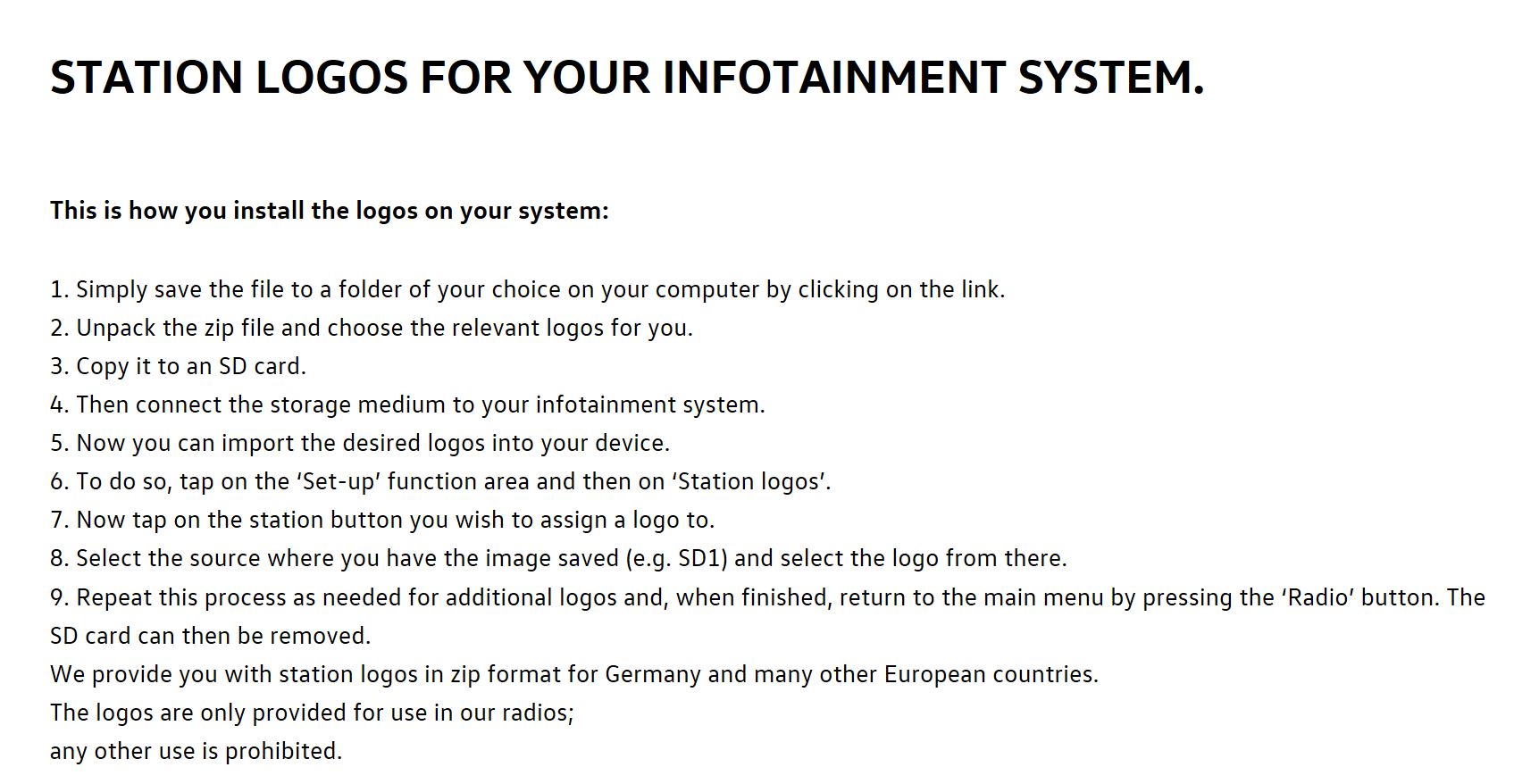 Dans le premier commentaire. This is a UK Radio Station Logo database that can be added to all VW Seat Skoda models fitted with either the MIB1 or MIB2 head units. Volkswagen Club Of Morocco.